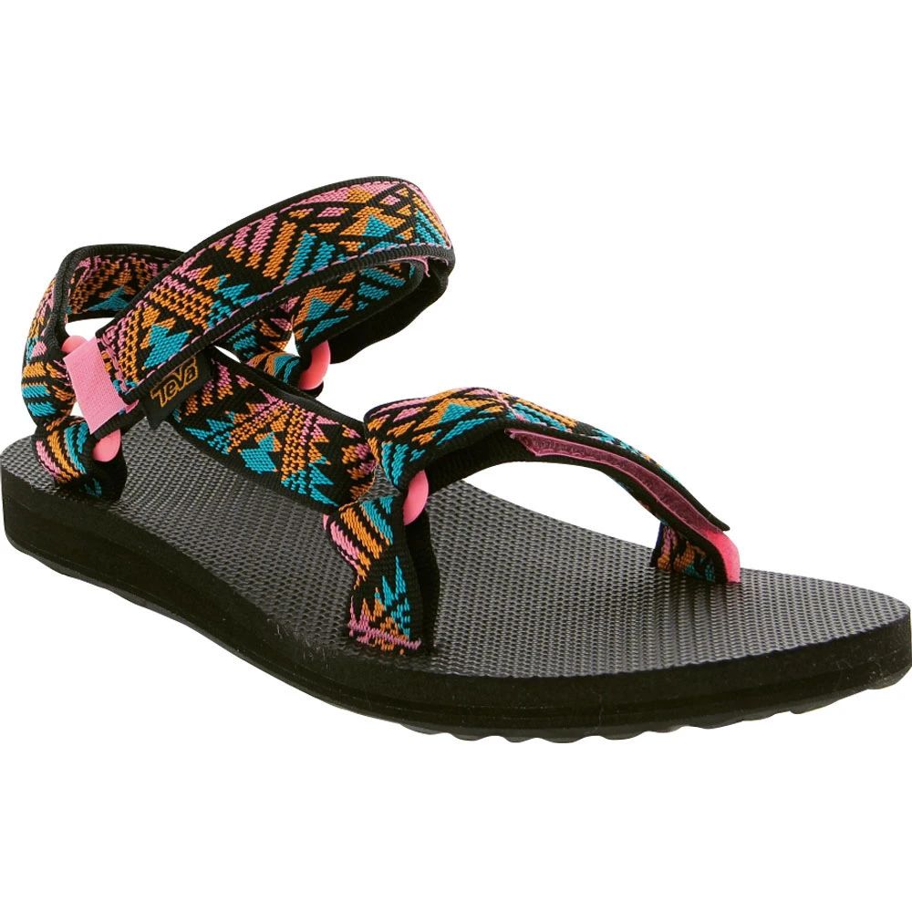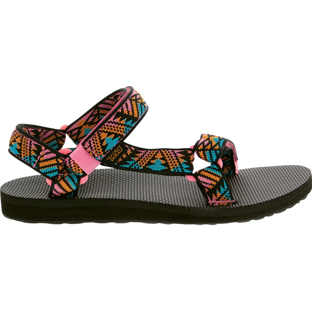 Teva Original Universal Women’s Sandals. Woven nylon upper with an all-over, multi-color geo print gives this women’s sandal a unique feel and look. Adjustable loop and hook closure at the ankle and toe ensures a secure and great fit. Cushioned EVA insole keeps you cushioned for an all-day comfort. Textured rubber outsole provides great traction on a variety of surfaces. Keep a classic and stylish look in the Teva Original Universal Sandals.