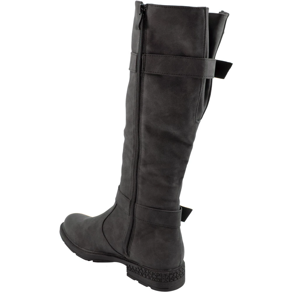 Two Lips Too Jordy Tall Dress Boots – Womens. Enjoy superior comfort and style with these womens tall dress boots. These trendy riding boots have PU uppers with zip closures and adjustable buckles at the calves. Soft memory foam insoles keep you comfortably supported while rubber outsoles give you stability and traction. A rounded almond-shaped toe gives these boots a versatile and feminine look that works beautifully with your favorite cool-weather outfits.