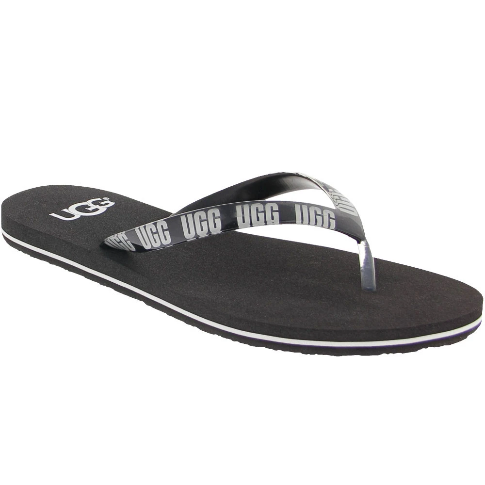UGG Simi Graphic Women’s Flip Flops. These Ugg Simi Graphic Flip Flop Women’s Shoes offer casual comfort and style at the beach or pool inspired by the bold colors, logos and graphics worn by Los Angeles fashionistas. They feature contrasting logos across the straps and along the sides of the soles.